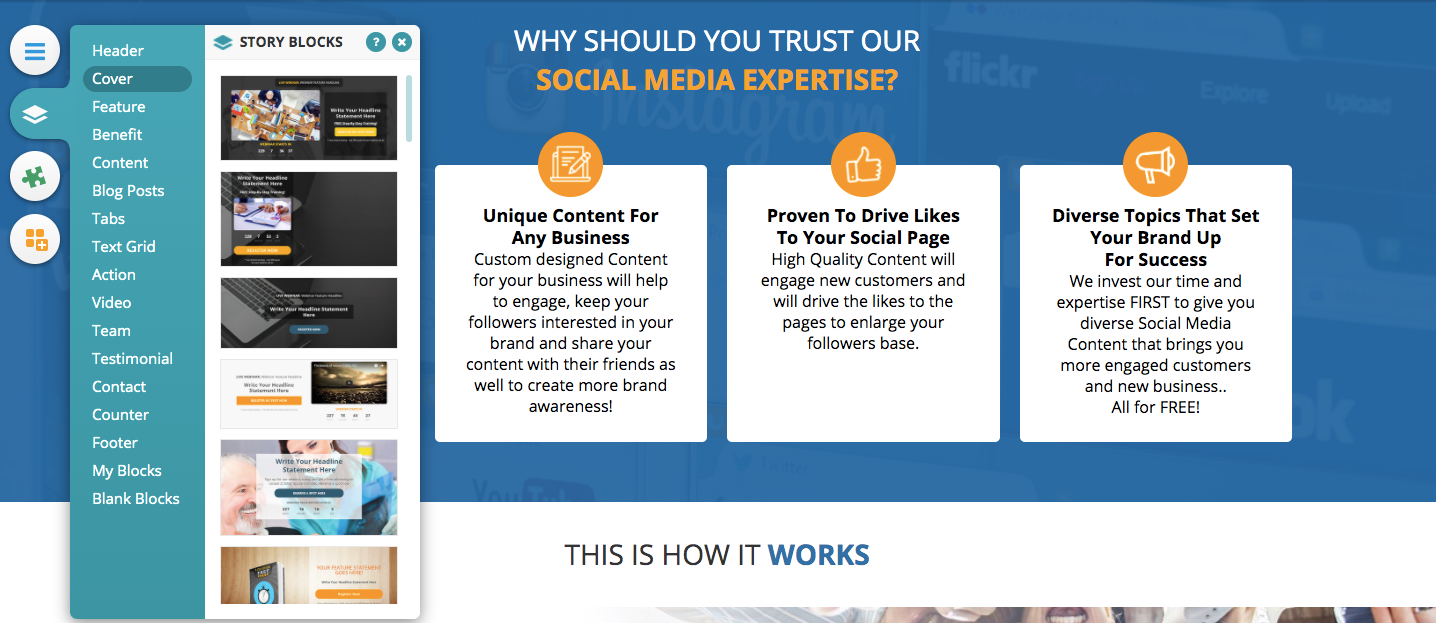 Tap into the power of Funnel Pages' revolutionary visual funnel builder and it's proprietary “21 Story Block Formula” to instantly differentiate your brand to tell the story about your products and services, expertise and value in the marketplace.